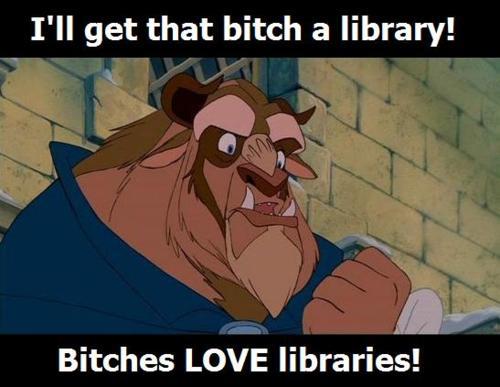 i think i will continue, but i HOPE that there are fewer rapes & attempted rapes. seriously. also, i love your picture of the beast. he’s right, bitches DO love libraries. i love how in the picture, it looks like he’s doing a fist pump. 🙂 ~dixie