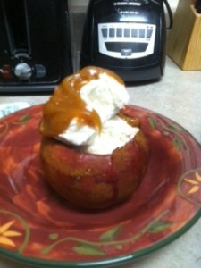 First, core the apples and hollow them out, leaving enough room to plop some ice cream in there.