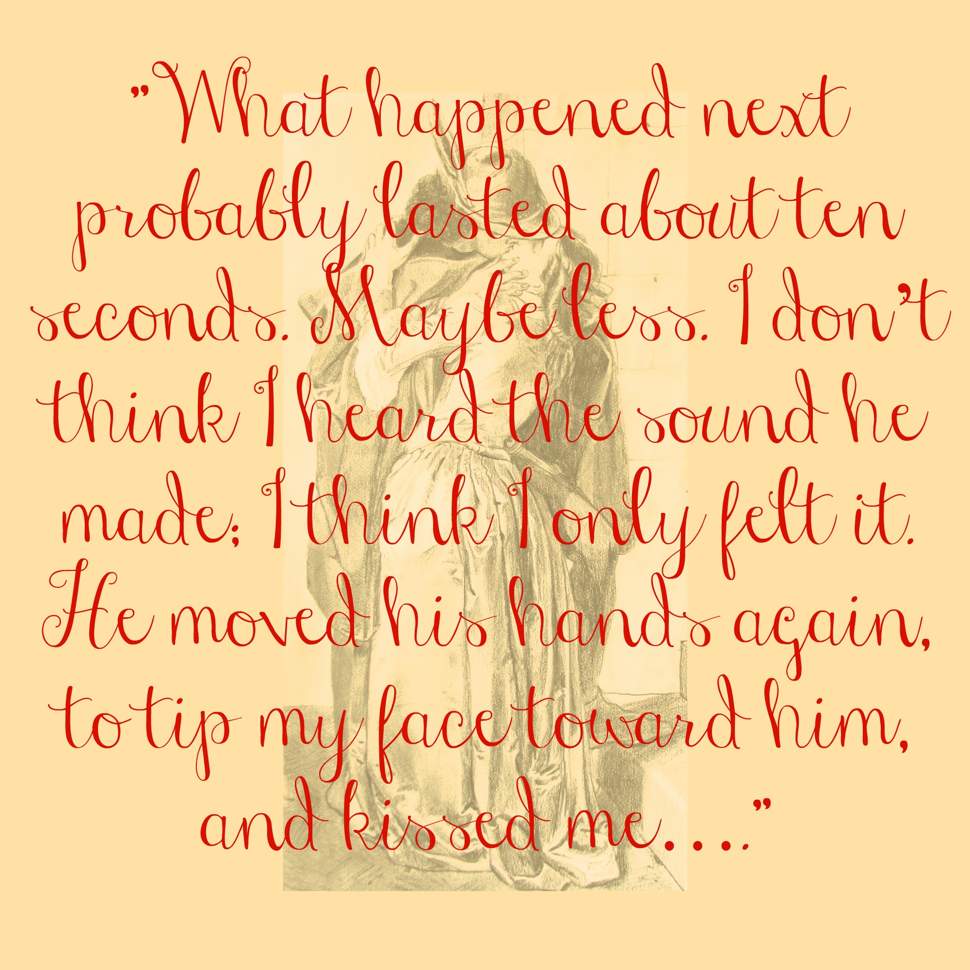 What happened next probably lasted about ten seconds. Maybe less. I don’t think I heard the sound he made; I think I only felt it. He moved his hands again, to tip my face toward him, and kissed me….