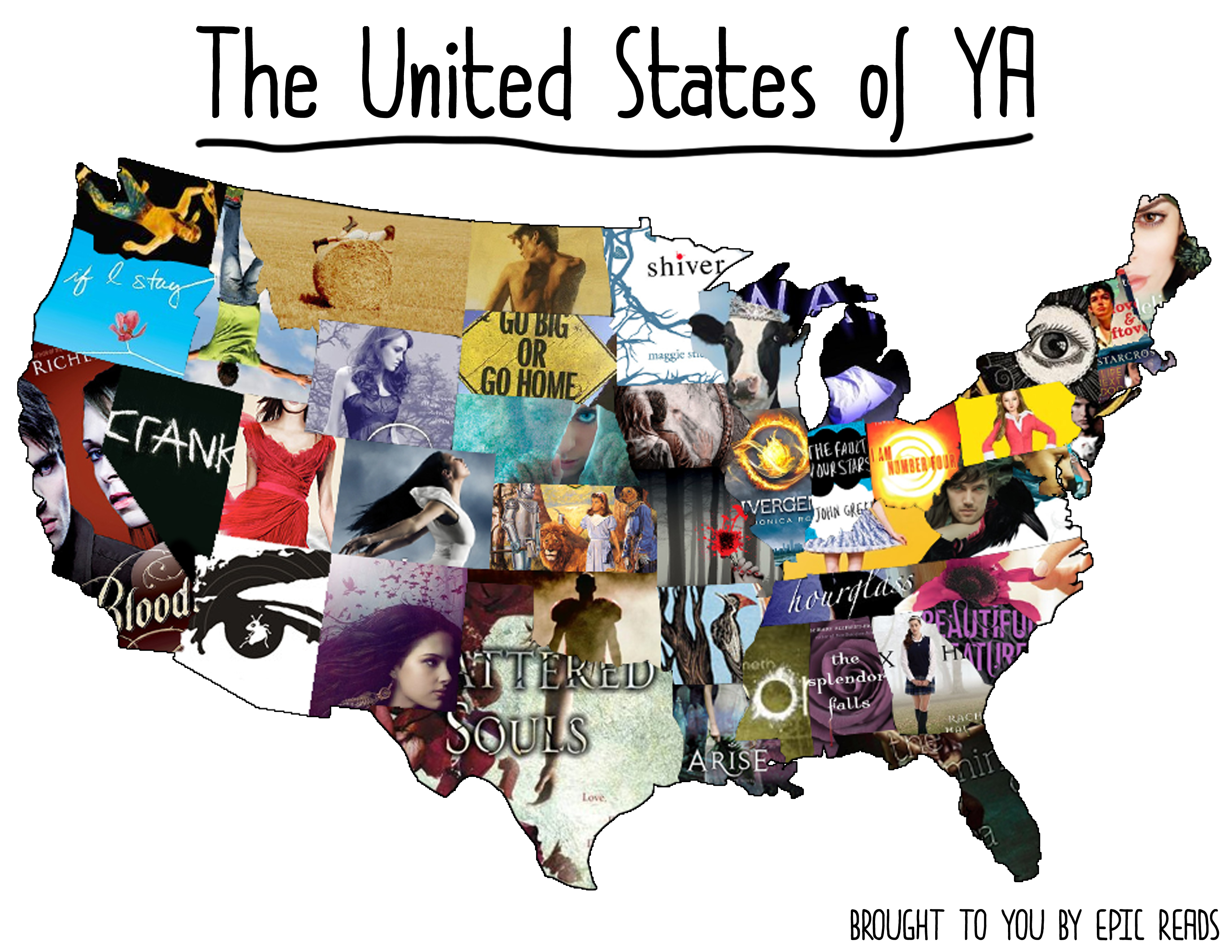 I need some help…I am putting together a lovely United States of YA display at work (based off of this amazing map from EpicReads) and I need some titles!! We either don’t have the ones listed here or they are checked out and so on…